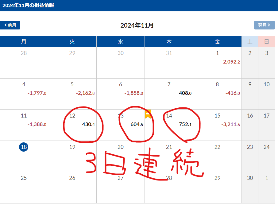 プラスの日が3日連続 新記録