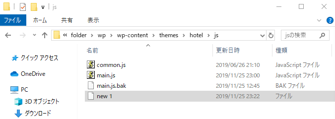 localのjsフォルダの中に、(自作の)main.jsをまず入れました。